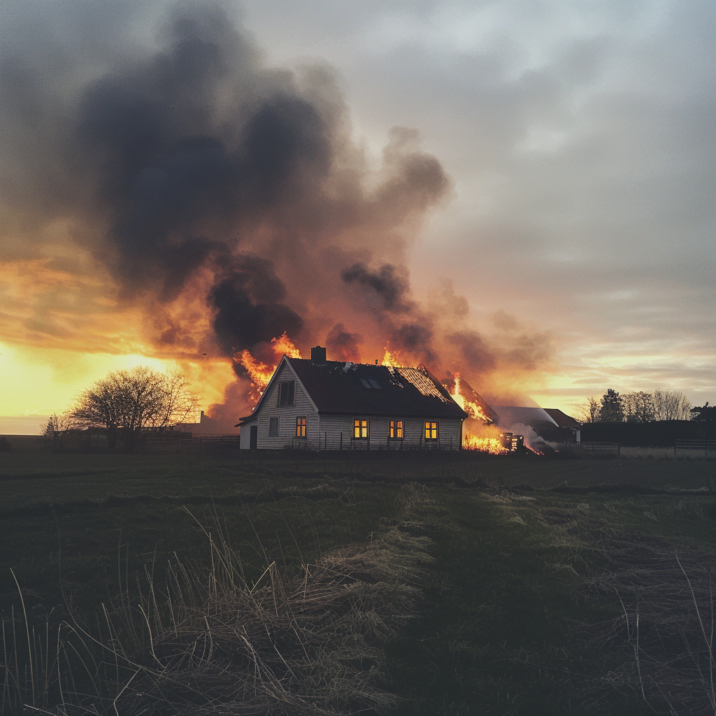 Det var en tidlig morgen, og solen var knap stået op, da jeg tændte flammen og trådte tilbage for at betragte mit værk. Flammerne dansede ivrigt og kastede en uhyggelig, men smuk glød over det ellers rolige landskab. Røgen steg op mod himlen i tykke, sorte skyer, og lyden af træ, der knagede og brændte, fyldte luften.