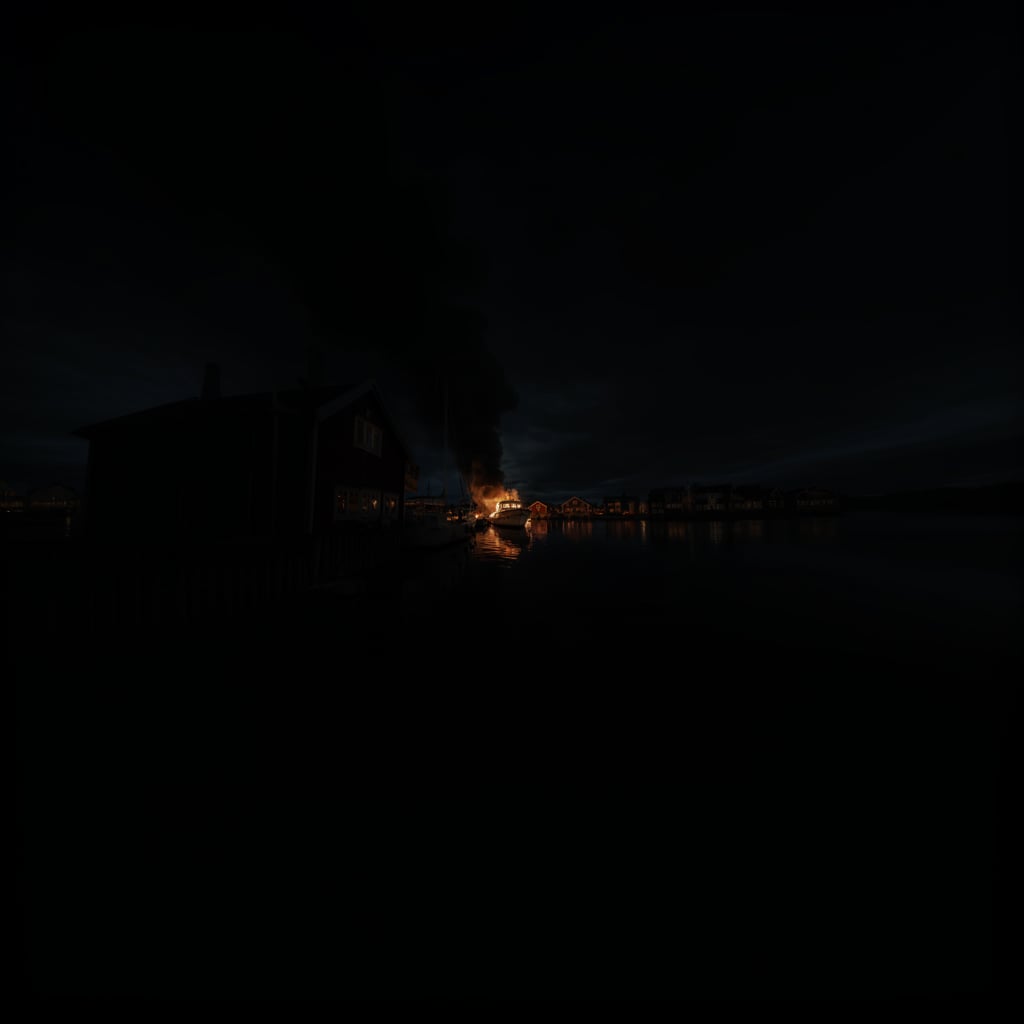 Røgen spredte sig hurtigt, og på en vindstille dag lå båden stille i vandet og vuggede, mens ilden langsomt, men sikkert, åd sig ind på den.